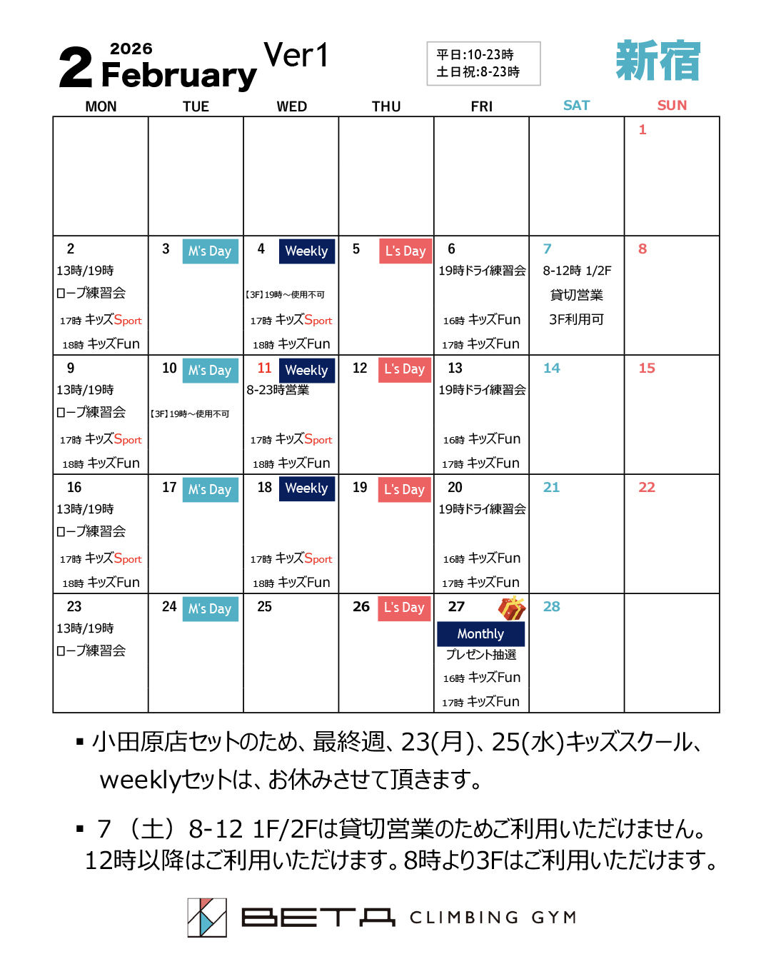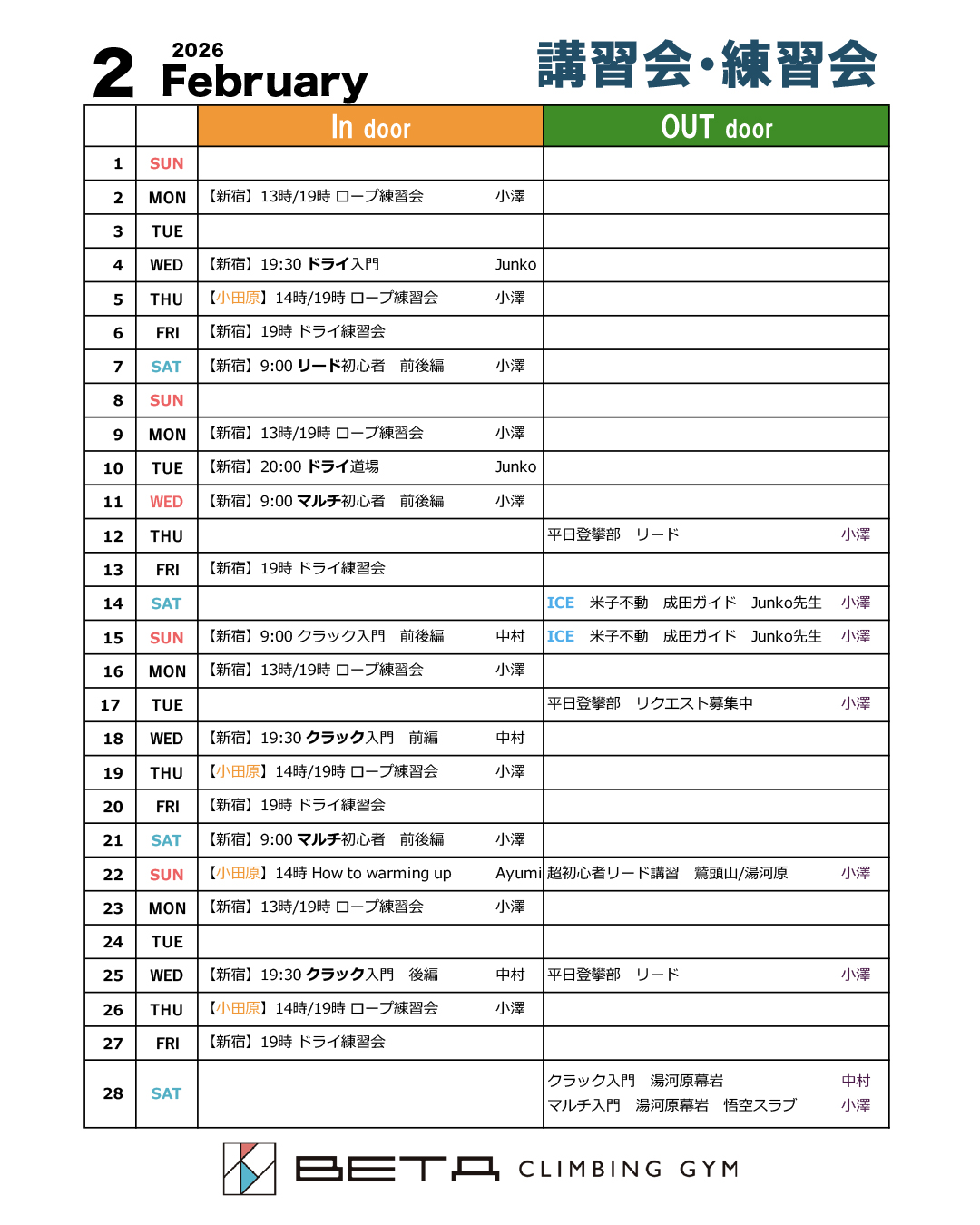 ベータ【初めてパック+"プラス"】講習カレンダー