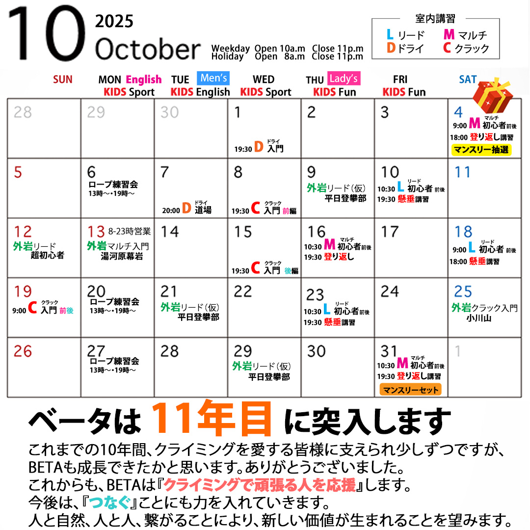 ベータ【初めてパック+"プラス"】講習カレンダー